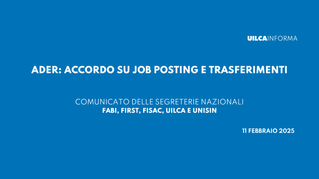 La sottoscrizione del verbale odierno consente alle colleghe ed ai colleghi di candidarsi per un percorso di sviluppo professionale senza doverne sostenere i costi, ma continueremo a vigilare sulle ricadute dell’utilizzo della modalità “Job posting” per ricoprire le posizioni di responsabilità a tutti i livelli.