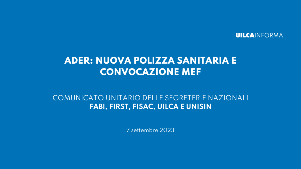Vi comunichiamo che, nel pomeriggio di ieri, è pervenuta alle scriventi Segreterie per il giorno 11 settembre alle ore 15.30 l’attesa convocazione da parte del Mef – Dipartimento delle finanze sulle modalità applicative delle disposizioni dei commi 258-260-263 della Legge n.197 del 2022 (legge di bilancio 2023) riguardanti il trasferimento da parte dell’Agenzia delle entrate-riscossione, entro il 31 dicembre 2023, delle attività relative all’esercizio dei sistemi Ict a Sogei Spa mediante cessione del ramo di azienda.