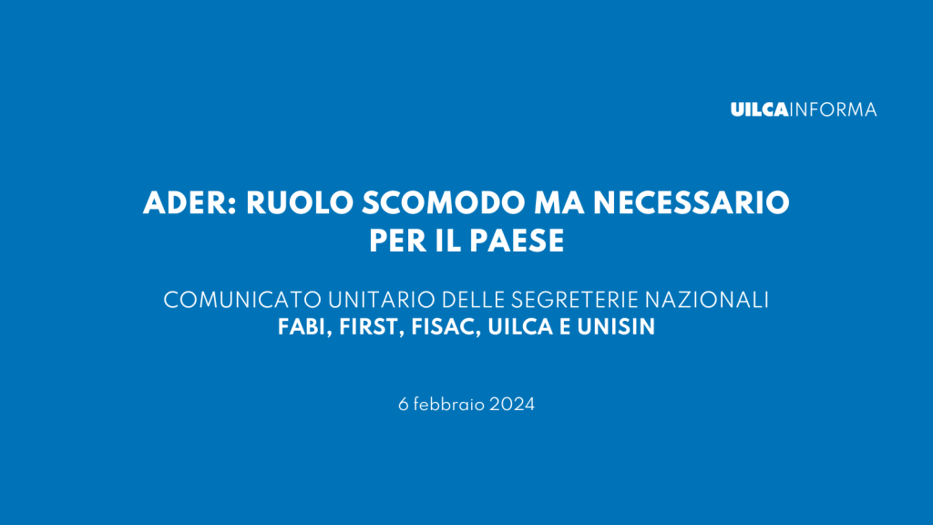 Il Direttore ha inoltre annunciato il piano triennale di assunzioni (2024-2026) che verrà attuato in Ader e che prevede l’ingresso di 1500 lavoratrici e lavoratori, accogliendo così favorevolmente le richieste più volte avanzate dalle scriventi Segreterie per far fronte alle crescenti e quotidiane difficoltà dei colleghi.