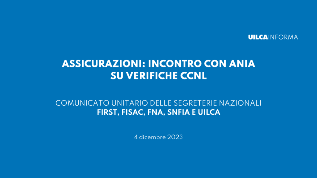 Oggi, 4 dicembre 2023, si è svolto in Ania a Milano un incontro fra le Organizzazioni Sindacali e la delegazione Ania, per le verifiche previste dal Ccnl sottoscritto nel novembre 2022.