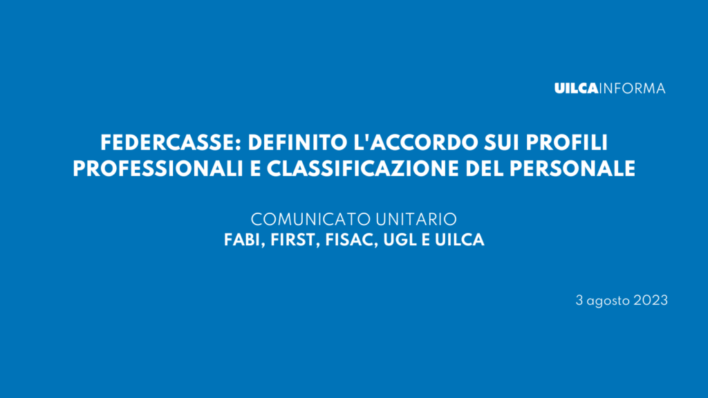 Si è concluso nella tarda serata di mercoledì 2 agosto l’incontro politico tenuto tra Federcasse, le Segretarie Nazionali e i Coordinatori di Gruppo sul tema dei Profili Professionali e della Classificazione del Personale.