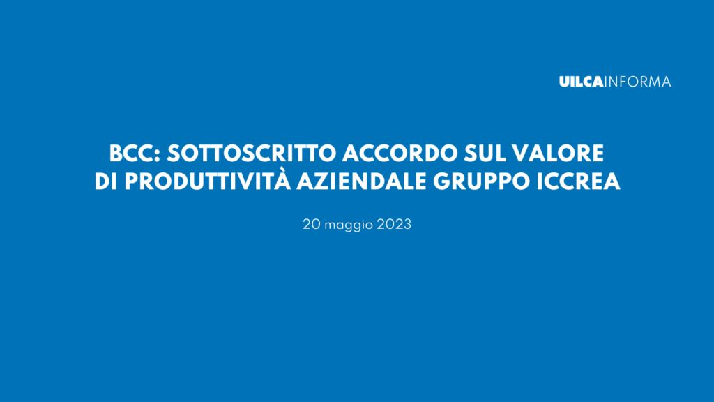 Nella serata di sabato 20 maggio 2023, è stato sottoscritto, dopo una lunga e complessa trattativa, il verbale di accordo per la disciplina del Valore di Produttività Aziendale (VPA) riguardante tutto il personale dipendente della Capogruppo, delle BCC e delle Aziende facenti parte del Gruppo Bancario Cooperativo Iccrea.