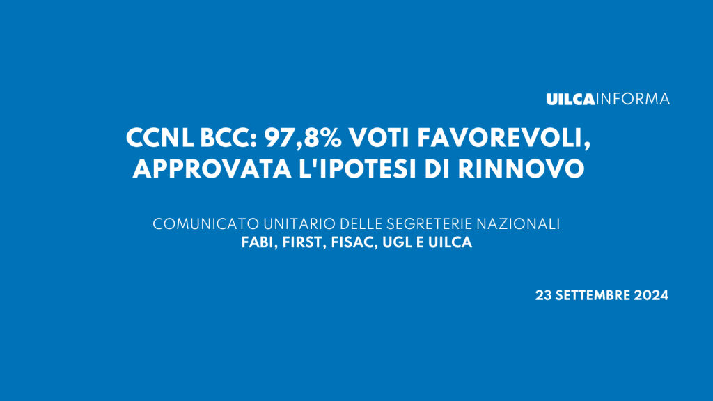 In questi giorni si sta concludendo l’intensa e capillare sessione di assemblee sindacali delle Lavoratrici e dei Lavoratori del Credito Cooperativo, indette su tutto il territorio nazionale, per la presentazione e votazione dell’ipotesi di accordo di rinnovo del Ccnl per le Aree Professionali e i Quadri Direttivi del Credito Cooperativo del 09 luglio 2024.