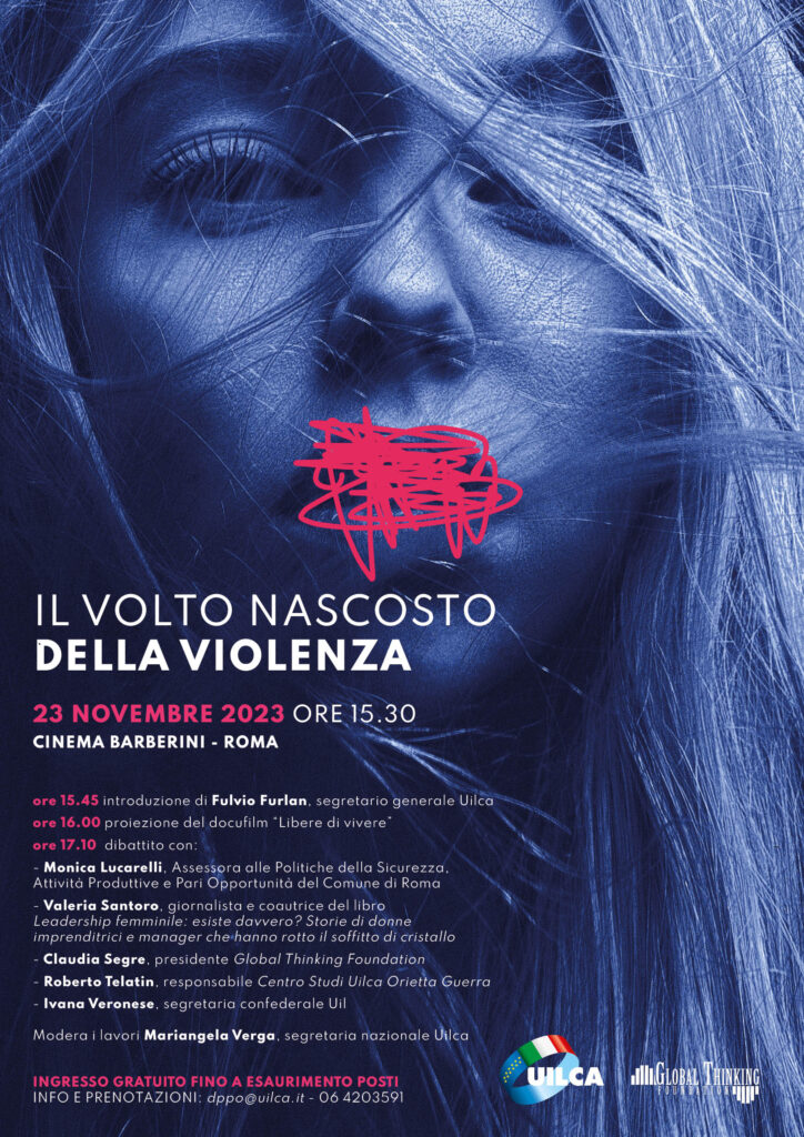 In occasione della Giornata internazionale per l’eliminazione della violenza contro le donne, giovedì 23 novembre alle ore 15.30, a Roma presso il cinema Barberini, Uilca in collaborazione con la Global Thinking Foundation di Claudia Segre presenta Il volto nascosto della violenza, una narrazione di donne, appartenenti a diversi settori e classi sociali, vittime di violenza. All’evento saranno presenti personalità del mondo politico e sindacale, della finanza e della stampa. Un’agorà per condividere opinioni e idee e promuovere soluzioni e programmi politici in un’ottica tutta al femminile.