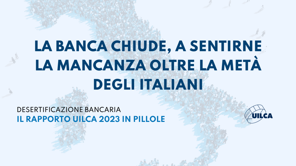 Da una ricerca Uilca, il Sindacato della Uil dei bancari guidato dal segretario generale Fulvio Furlan, sulla desertificazione bancaria emerge che il 63,5% degli italiani ha percepito la mancanza/riduzione della filiale bancaria. L’indagine, svolta durante il 2023 nel corso della campagna “Chiusura filiali? No, grazie.” che ha portato Uilca nelle piazze d’Italia, ha posto l’accento sull’impatto della progressiva riduzione degli sportelli bancari sulla popolazione. Una sentiment analysis che raccoglie il grado di percezione delle persone rispetto al fenomeno. Di oltre la metà che ha dichiarato di aver avvertito la mancanza/riduzione della filiale, il 35,7% di questi ha dichiarato di averla percepita “molto” e il 27,8% “abbastanza”. In particolare, a percepire “molto” la mancanza/riduzione della filiale, rispetto alla media nazionale, sono i residenti della regione Emilia-Romagna con il 50,2%. Al di sotto della media italiana si posiziona invece la Sicilia con il 20,1%.