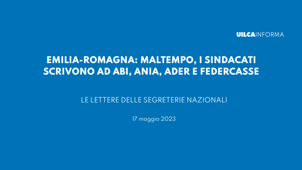 Emilia-Romagna: maltempo, i Sindacati ad Abi, Ania, AdER e Federcasse