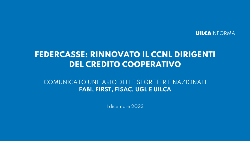 Le Organizzazioni Sindacali ritengono che l’accordo raggiunto restituisca pieno valore e dignità professionale a tutta la categoria rappresentata dai 650 Dirigenti del Credito Cooperativo.