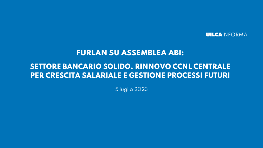 “Condividiamo l’analisi di un settore bancario italiano solido e che per affrontare le continue novità tecnologiche, la qualità e la complessità sempre crescenti del lavoro bancario servano aggiornamenti contrattuali lungimiranti. In questo senso, il prossimo rinnovo del Contratto Nazionale del credito rappresenta un’opportunità importante per gestire il futuro del settore. È fondamentale mantenere la centralità del Contratto Nazionale, quale garanzia dell’unicità e dell’identità della categoria dei bancari, e l’equilibrio con la contrattazione di secondo livello, in modo da gestire i processi di cambiamenti futuri, dovuti anche alla digitalizzazione e alle novità tecnologiche, attraverso una contrattazione collettiva permanente. In questo ambito sarà importante, anche, valorizzare la Cabina di Regia istituita con il precedente rinnovo”, così il segretario generale Uilca Fulvio Furlan sulla relazione del presidente dell’Associazione Bancaria Italiana Antonio Patuelli all’Assemblea degli associati.