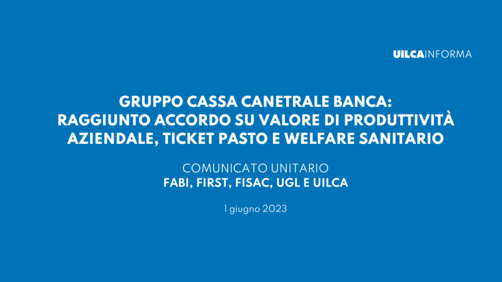 In ogni caso le prestazioni saranno operative dal 1.1.2024. La validità degli accordi sottoscritti è vincolata all’approvazione da parte del Consiglio di Amministrazione di Cassa Centrale che si terrà giovedì 15 giugno. Dopo tale data il confronto riprenderà al fine di definire tutti gli altri temi presenti in piattaforma a cominciare dalle condizioni mutuo prima casa dipendenti.