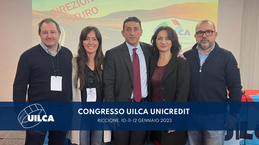 A Riccione dal 10 al 12 Gennaio 2023 si è tenuta l’Assemblea Congressuale della Uilca Unicredit, che ha visto la rielezione all’unanimità di Rosario Mingoia quale segretario responsabile della Segreteria di Coordinamento Uilca Unicredit.