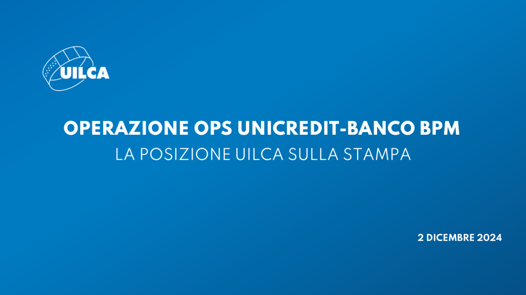 Lunedì 25 novembre 2024 Unicredit presenta un’offerta pubblica di scambio volontaria (Ops) per Banco Bpm per un corrispettivo totale di circa 10,1 miliardi di euro, qui di seguito la posizione Uilca.