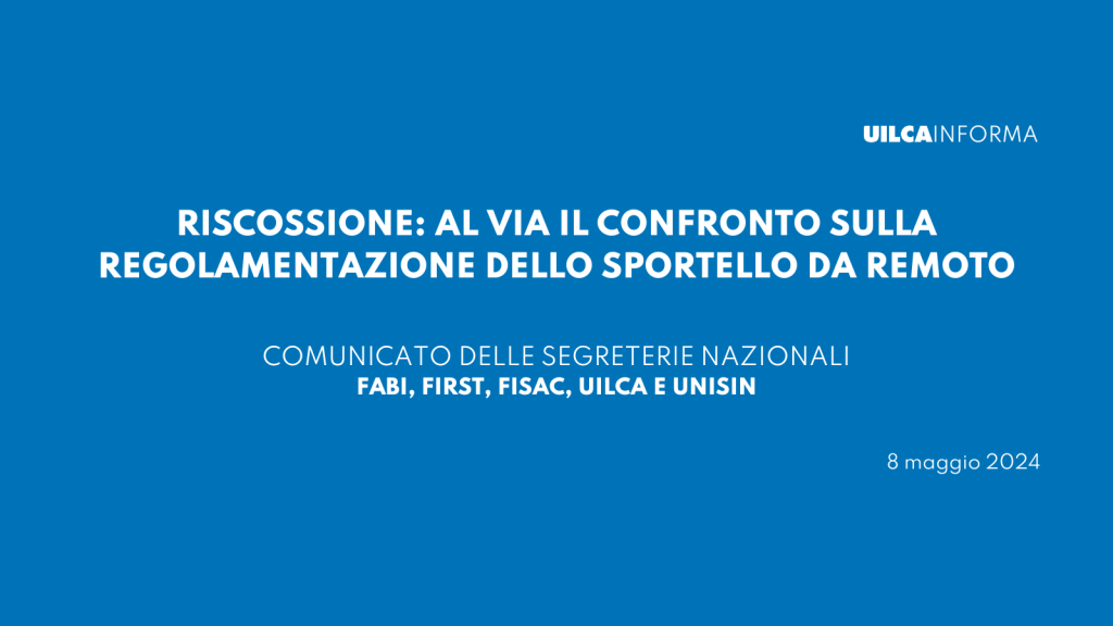 Oggi è iniziato il confronto per la regolamentazione dello sportello da remoto la cui sperimentazione è terminata.