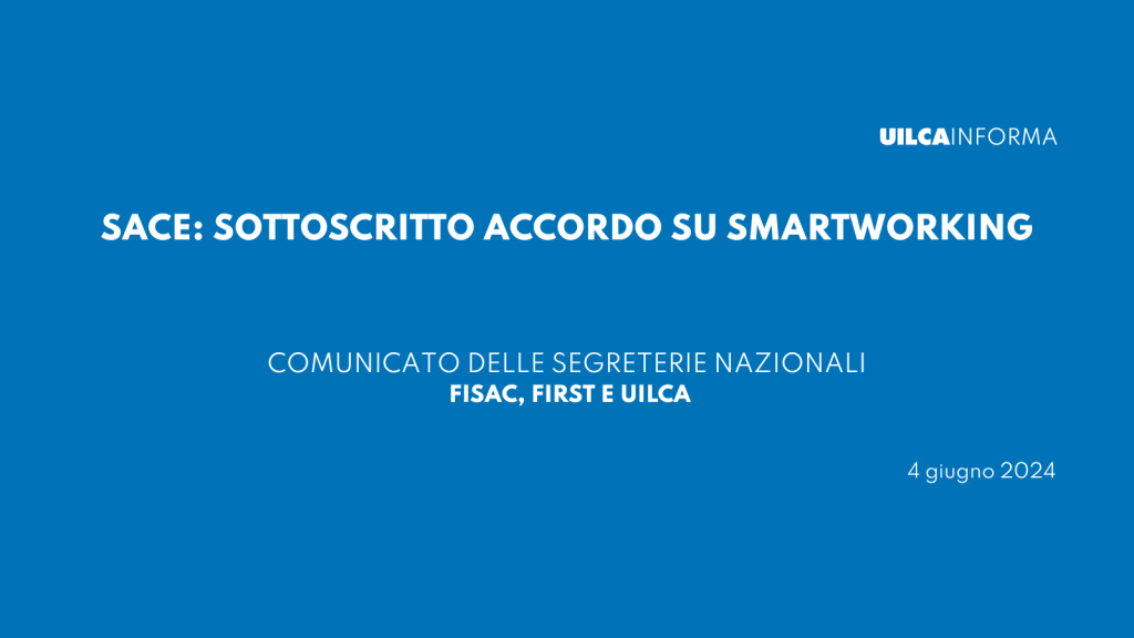 E’ stato quindi sottoscritto un verbale a valere quale accordo tra le Parti, in cui si è ribadito che l’istituto dello smart working definito nell’accordo CIA di dicembre 2023, ha natura volontaria e indipendente da qualsiasi altra forma di lavoro flessibile, e quindi la sua sottoscrizione da parte dei dipendenti di SACE non è e non può essere condizionata a nessun altra forma di modulazione della prestazione lavorativa.
