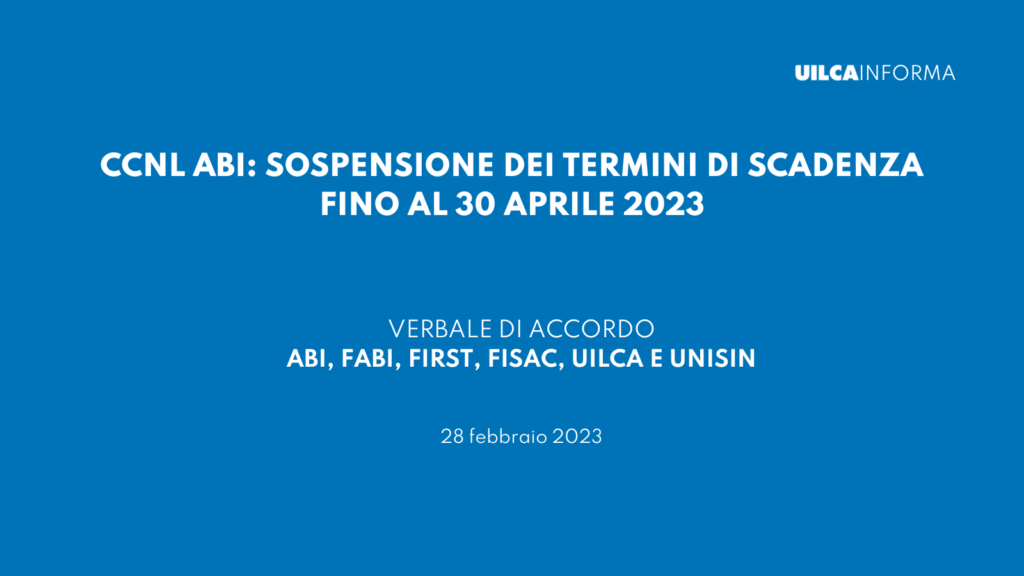 Uilca: Ccnl Abi, sospensione termini di scadenza al 30 aprile 2023