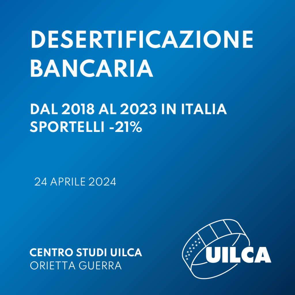Dal Rapporto Annuale Uilca L’impatto della desertificazione bancaria sugli italiani è emerso che nove persone su dieci sono insoddisfatte dalla chiusura degli sportelli bancari nel proprio comune e ritengono utile parlare con un operatore bancario. Per otto su dieci non sarebbe lo stesso se lo sportello bancario chiudesse e fosse sostituito da un bancomat. Per sette su dieci la prossimità bancaria influisce sulla propensione all’investimento in prodotti finanziari: la banca non è solo un luogo dove custodire i risparmi ma anche il motore dal quale si origina la produzione di ricchezza. I dati, raccolti su 2.870 interviste, fanno parte della prima indagine volta a misurare il sentiment del fenomeno della desertificazione bancaria nel Paese e sono stati elaborati dall’istituto di ricerca Lab 21.01.