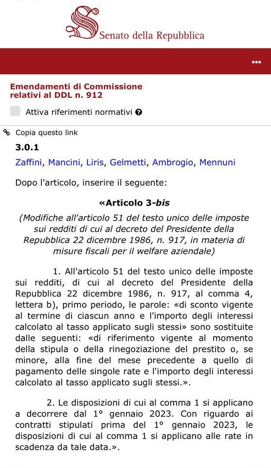 Presentato martedì 7 novembre in Commissione Bilancio in Senato, l’emendamento sul tema dei Fringe Benefit al decreto-legge fiscale. Qui l’articolo 3 bis di interesse. Il testo completo disponibile sul sito del Senato.it