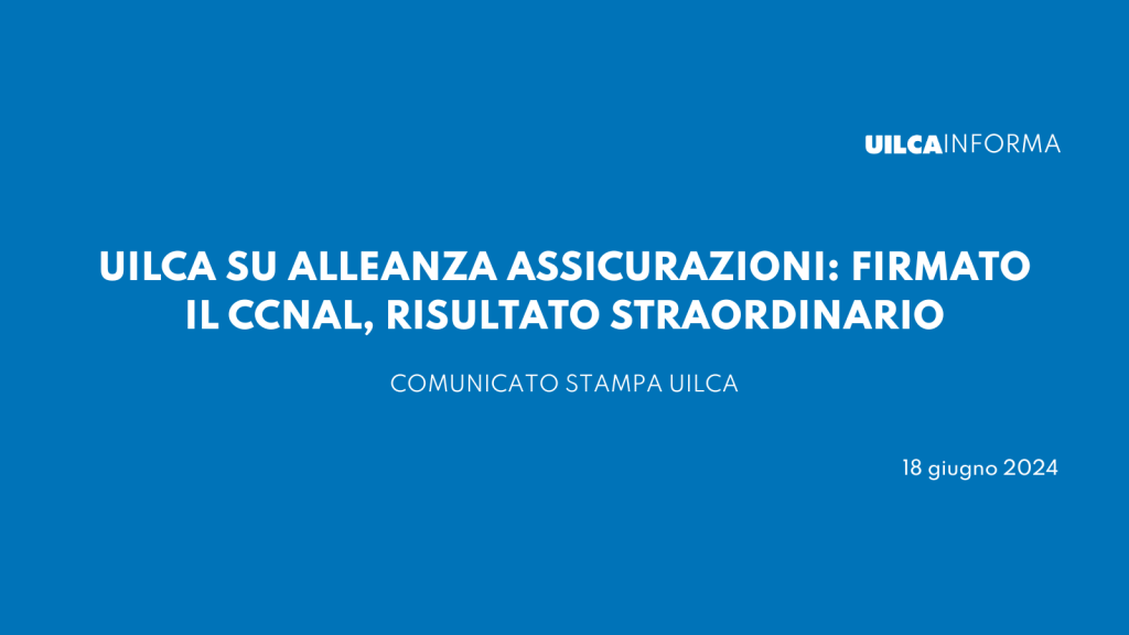 “Siamo molto soddisfatti dello straordinario risultato raggiunto nella vicenda contrattuale di Alleanza Assicurazioni, grazie a perseveranza, correttezza e capacità di sintesi delle diverse posizioni da parte di Uilca”, così Massimo Faggiano, coordinatore Uilca Alleanza commenta la firma del Contratto Collettivo Nazionale Aziendale di Lavoro (Ccnal) appena siglato.