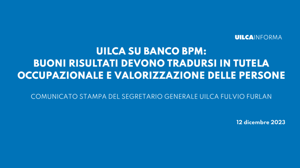 “L’importante processo di sviluppo e consolidamento portato avanti in questi anni da Banco Bpm è sempre stato accompagnato dal Sindacato con spirito costruttivo e propositivo. I risultati raggiunti dalla Banca, in termini patrimoniali e reddituali, che portano importanti remunerazioni per gli azionisti, devono tradursi in valorizzazione delle persone e in tutela occupazionale, con previsioni di assunzioni da concordare nell’ambito dell’indispensabile confronto il Sindacato. Il mantenimento dei livelli occupazionali è alla base di quelle soluzioni condivise ribadite nel recente rinnovo del Contratto Nazionale del credito, a partire dall’ampliamento dell’utilizzo del Fondo per l’Occupazione di settore”, così il segretario generale Uilca Fulvio Furlan al termine dell’incontro di presentazione del piano industriale della banca con l’amministratore delegato Giuseppe Castagna e i segretari generali delle Organizzazioni Sindacali del credito.