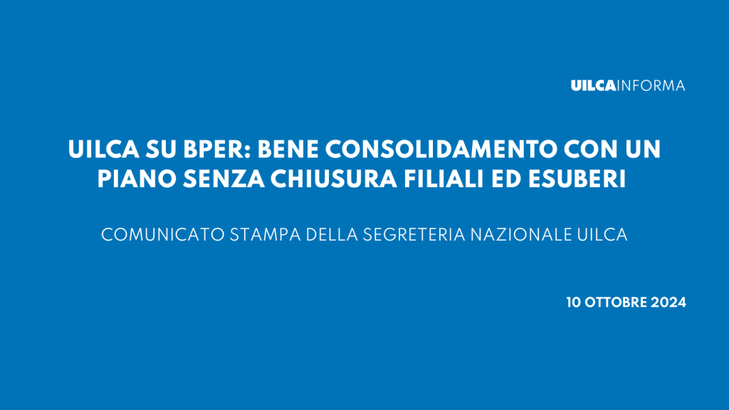 “Consideriamo positivo che Bper nel Piano d’Impresa B:Dinamic Full Value 2027 preveda una fase di futuro consolidamento e che in tale ambito non siano previste ulteriori chiusure di filiali nel triennio 2025-2027, anzi con meno chiusure di quelle programmate entro la fine di quest’anno”, così il segretario nazionale Uilca Giuseppe Bilanzuoli commenta il nuovo piano d’Impresa di Bper Banca presentato oggi dall’amministratore delegato Gianni Franco Papa alle Organizzazioni Sindacali. “Allo stesso tempo, riteniamo importante che non siano state prospettate procedure di uscita del personale oltre le 1.600 già definite negli accordi sottoscritti in Bper che prevedono circa 1.100 assunzioni. In merito abbiamo richiesto una particolare attenzione a prevedere soluzioni anche rispetto al turnover di 1.500 dipendenti, ipotizzando quindi un’attenzione ulteriore all’occupazione, anche grazie allo strumento della Staffetta Generazionale prevista nel rinnovo del Contratto Nazionale del Credito”, continua Bilanzuoli.