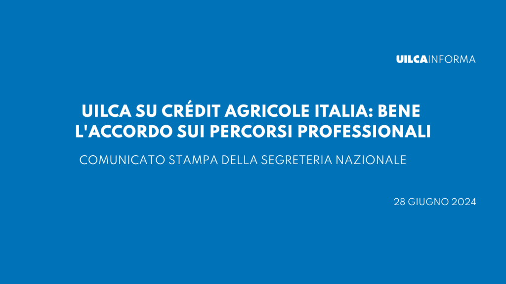 Sottoscritto, tra le Organizzazioni Sindacali e il Gruppo Crédit Agricole Italia, un accordo, frutto di un intenso e lungo dialogo, sui percorsi professionali. A beneficiarne saranno le lavoratrici e i lavoratori impiegati nella rete commerciale e nelle Direzioni Centrali e Territoriali dell’istituto bancario.