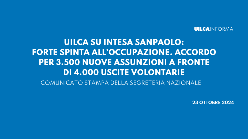 Uilca su Intesa Sanpaolo: forte spinta all’occupazione