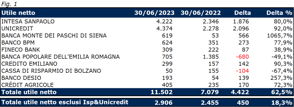 [1] Intesa Sanpaolo, Unicredit, Banca Monte dei Paschi di Siena, Banco Bpm, Banca Popolare dell’Emilia-Romagna, Credito Emiliano, Banco Desio, Fineco Bank, Cassa di Risparmio di Bolzano, Crédit Agricole.
